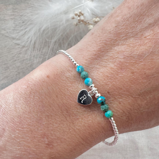 Personalised December Birthstone Bracelet, Dainty Turquoise Bracelet in Sterling Silver