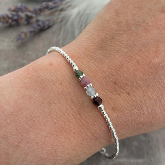 Memorial Birthstone Jewellery, Personalised Family Bracelet Sterling Silver Bracelet with Family Birthstones