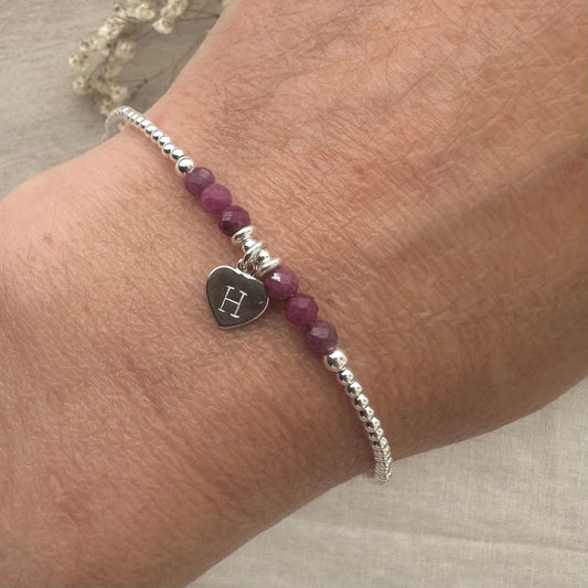 Personalised July Birthstone Bracelet, Dainty Ruby Bracelet in Sterling Silver