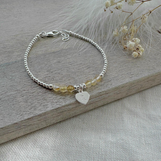 Personalised November Birthstone Bracelet, Dainty Citrine Bracelet in Sterling Silver