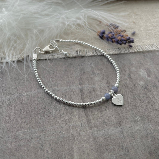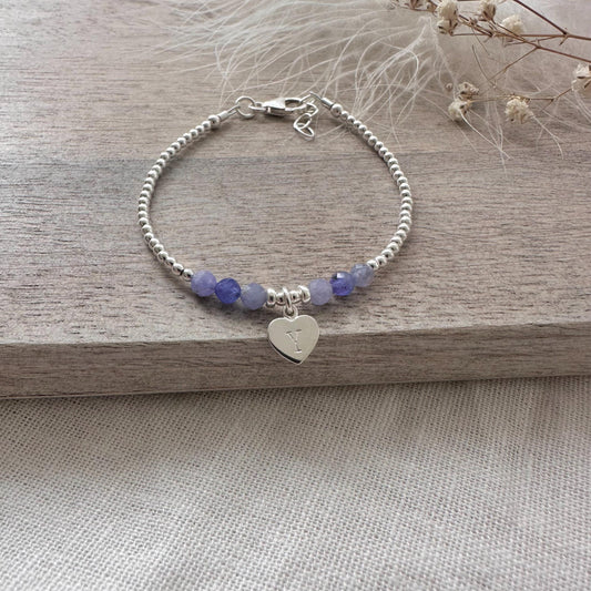 Personalised December Birthstone Bracelet, Dainty Tanzanite Bracelet in Sterling Silver
