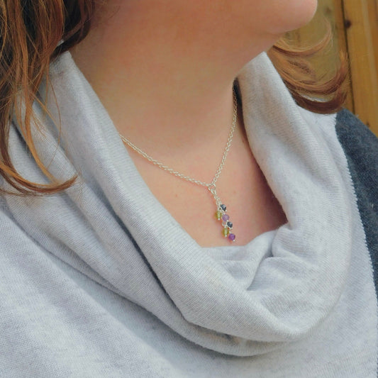 Dainty Family Birthstone Cascade Necklace, Family Jewellery for Mum in Sterling Silver