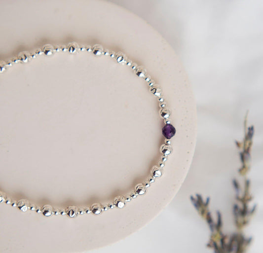 Birthstone Textured Layering Bracelet, sterling silver bead bracelet with birthstone of choice