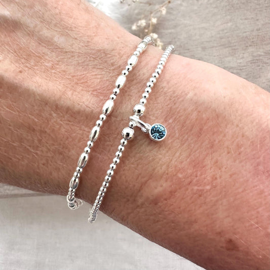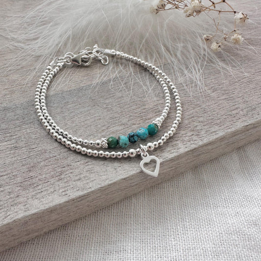 Birthstone Two Bracelets Set, Sterling Silver Jewellery gift for sister