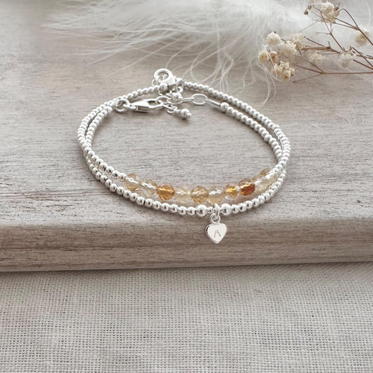 Personalised Citrine Bracelet Set, November Birthstone Jewellery