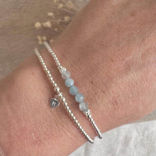 Personalised Aquamarine Bracelet Set, March Birthstone Jewellery