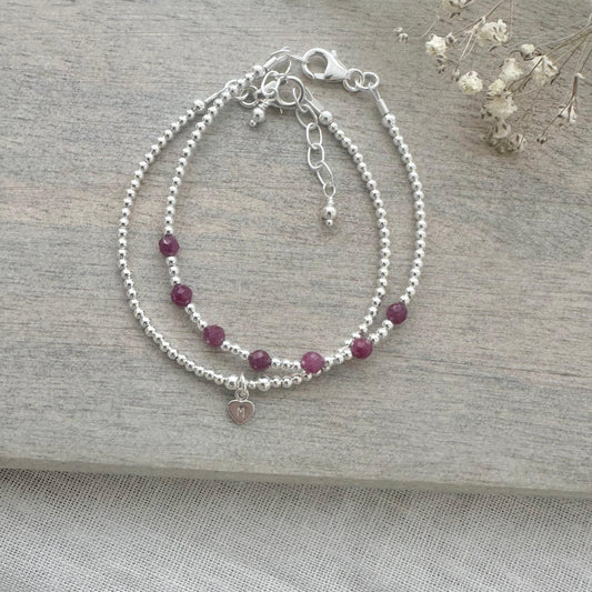 Personalised Ruby Bracelet Set, July Birthstone Jewellery