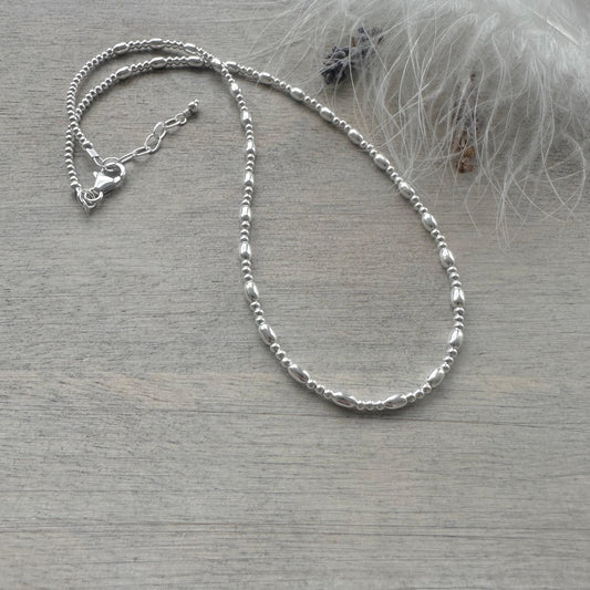 Thin Sterling Silver Oval Beaded Necklace, dainty necklace