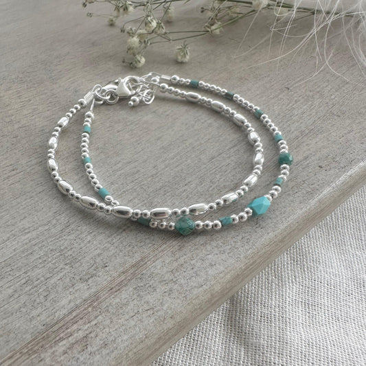 Set of Silver & Turquoise Bracelets, December Birthstones Bracelet Set in Sterling Silver
