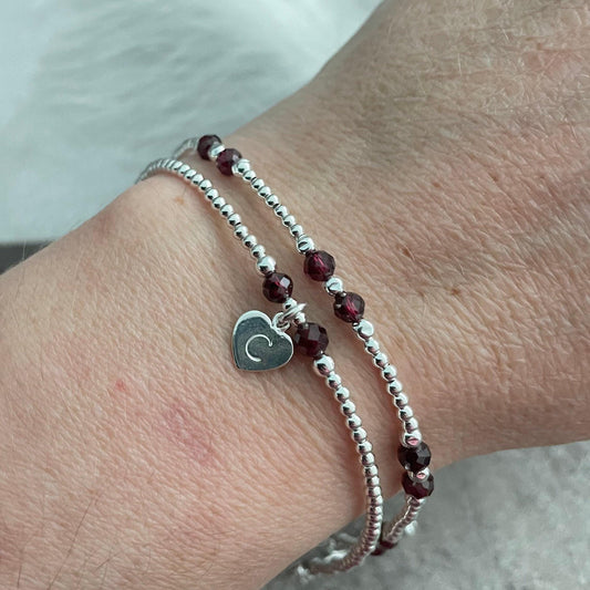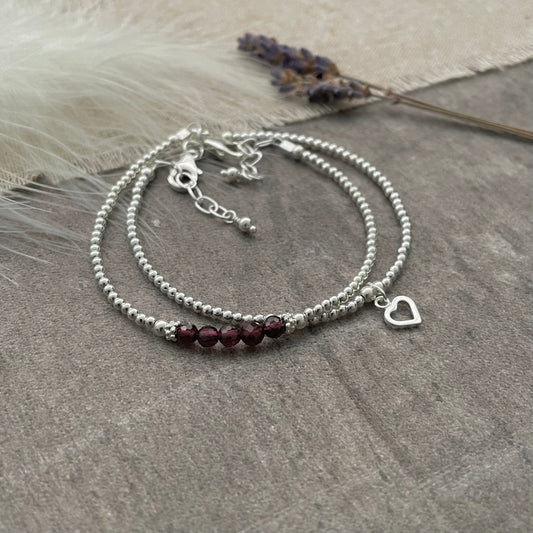 Personalised Bracelet Set with Garnet, January Birthstone Jewellery