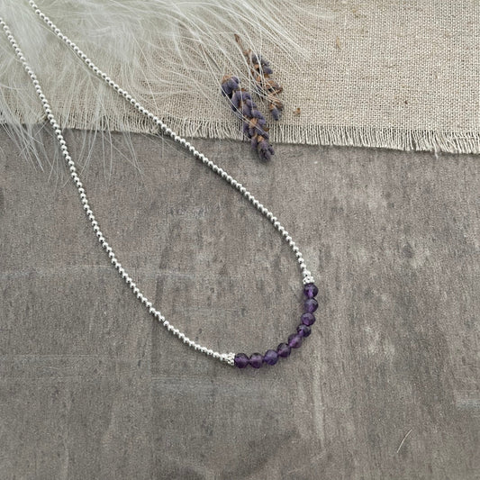 Thin Amethyst and Sterling Silver Bead Necklace, February Birthstone