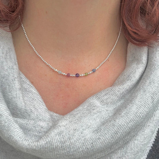 Sterling Silver Multiple birthstone Beaded Necklace, Family Birthstone Jewellery Gift for Mum for Mother’s Day