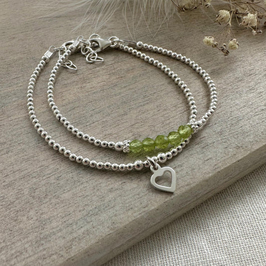 Set of Peridot Bracelets, August Birthstone Stacking Bracelet Set