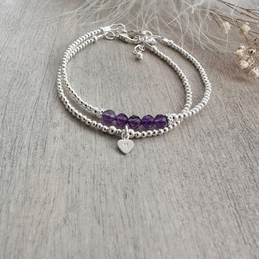 Personalised Amethyst Bracelet Set, February Birthstone Jewellery