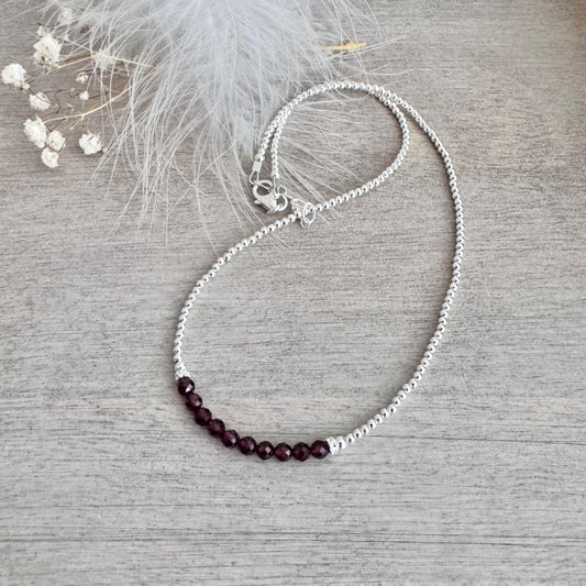 Thin Garnet and Sterling Silver Bead Necklace, dainty necklace