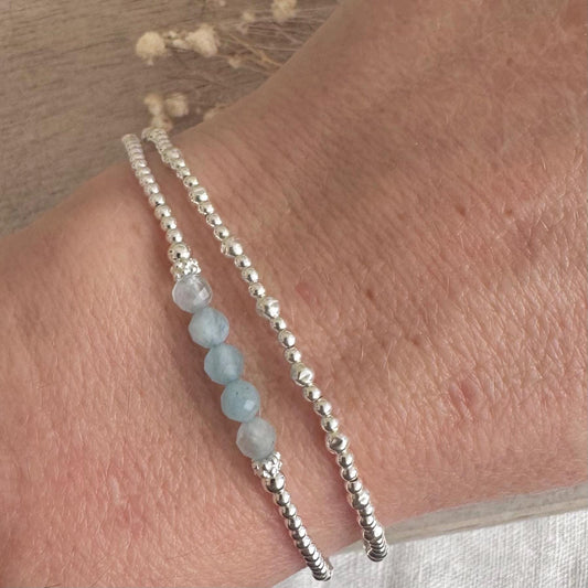 Two Stacking Bracelet Set with aquamarine, March Birthstone