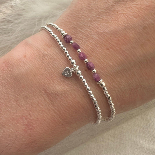 Set of Silver & Ruby Bracelets, Dainty July Birthstone Bracelet in Sterling Silver