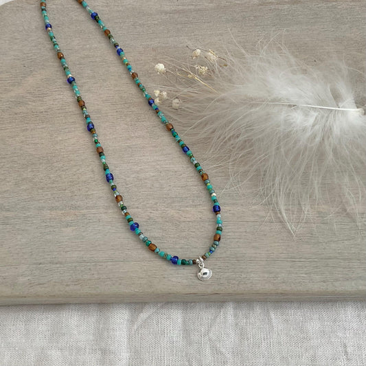Shell Charm Blue Necklace for holiday, Glass seed bead jewellery