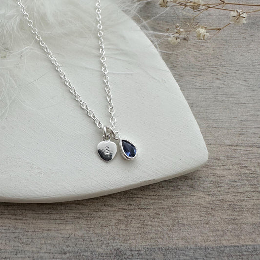 Silver Necklace Personalised with Initial and Birthstone in Sterling Silver