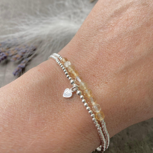 Personalised Citrine Bracelet, Dainty November Birthstone Jewellery in Sterling Silver