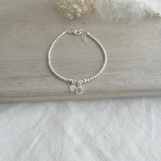 Personalised November Birthstone Bracelet for Birthday, Initial & Gem Crystal Charm in Sterling Silver