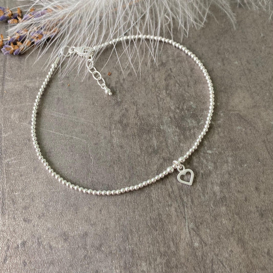 Sterling Silver Heart Charm Anklet, Ankle Bracelet for women