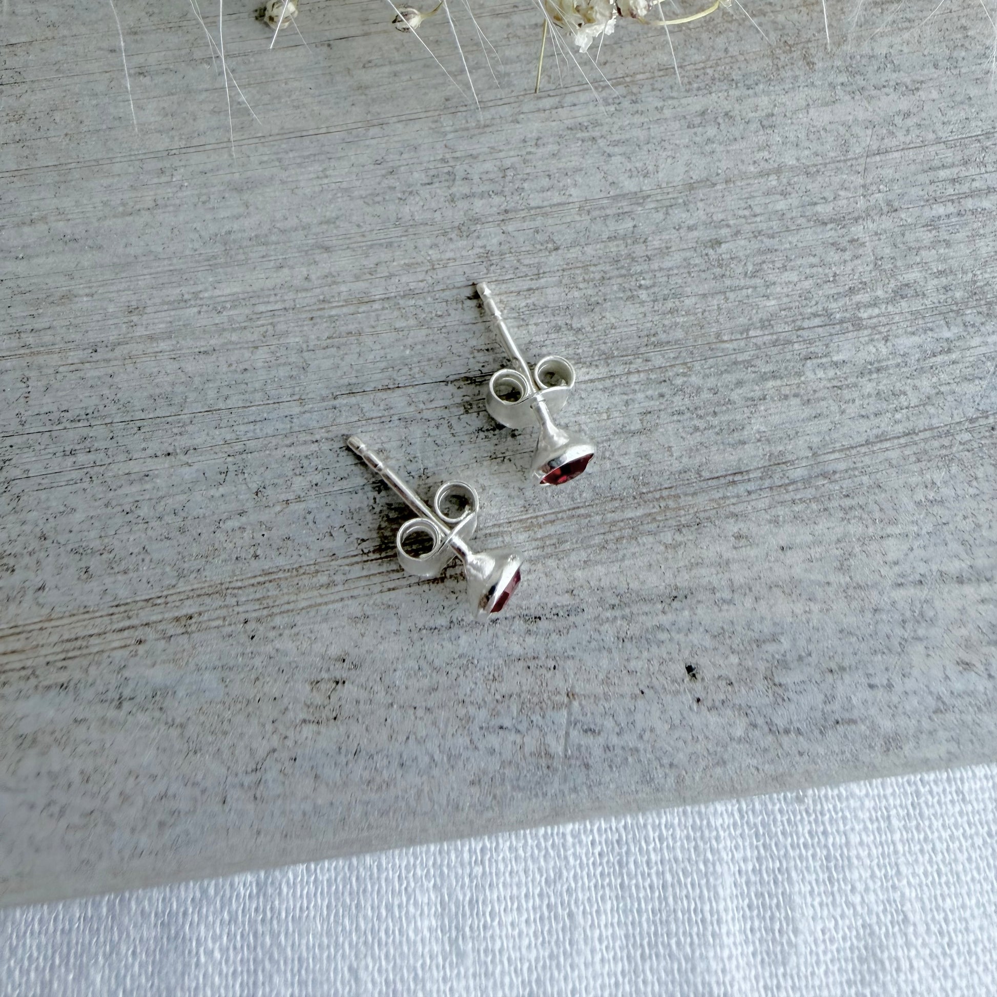 January Birthstone Crystal Stud Earrings in Sterling Silver, sourced by Dainty Rocks