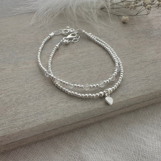 Rainbow Moonstone Layering Bracelet Set, Flashy Personalised June Birthstone Jewellery