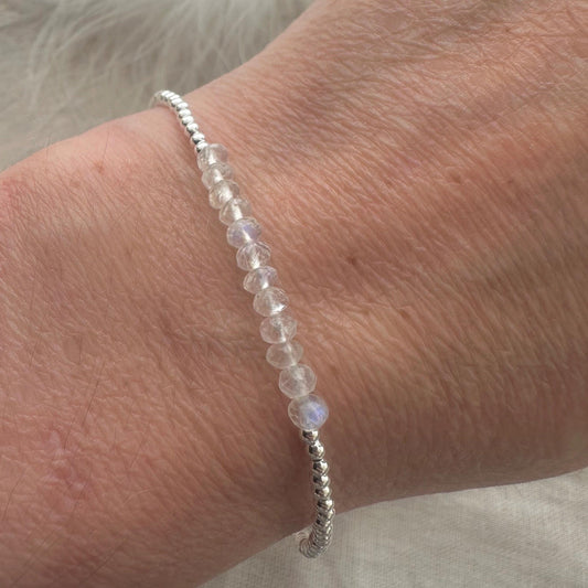 Dainty Rainbow Moonstone bracelet, June Birthstone Jewellery flashy