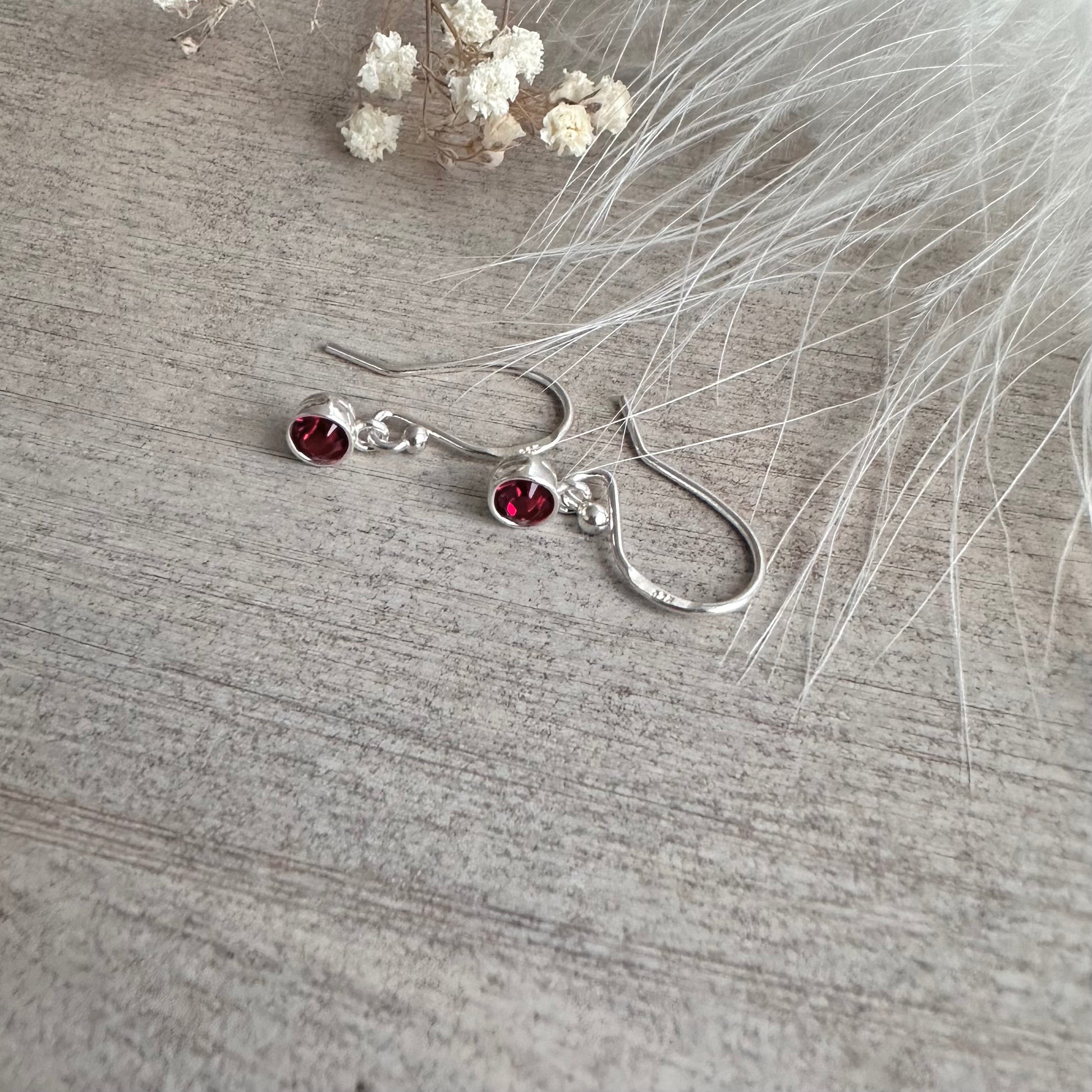 A 4mm Coloured crystal birthstone dangling on french style ear wires, in all sterling silver