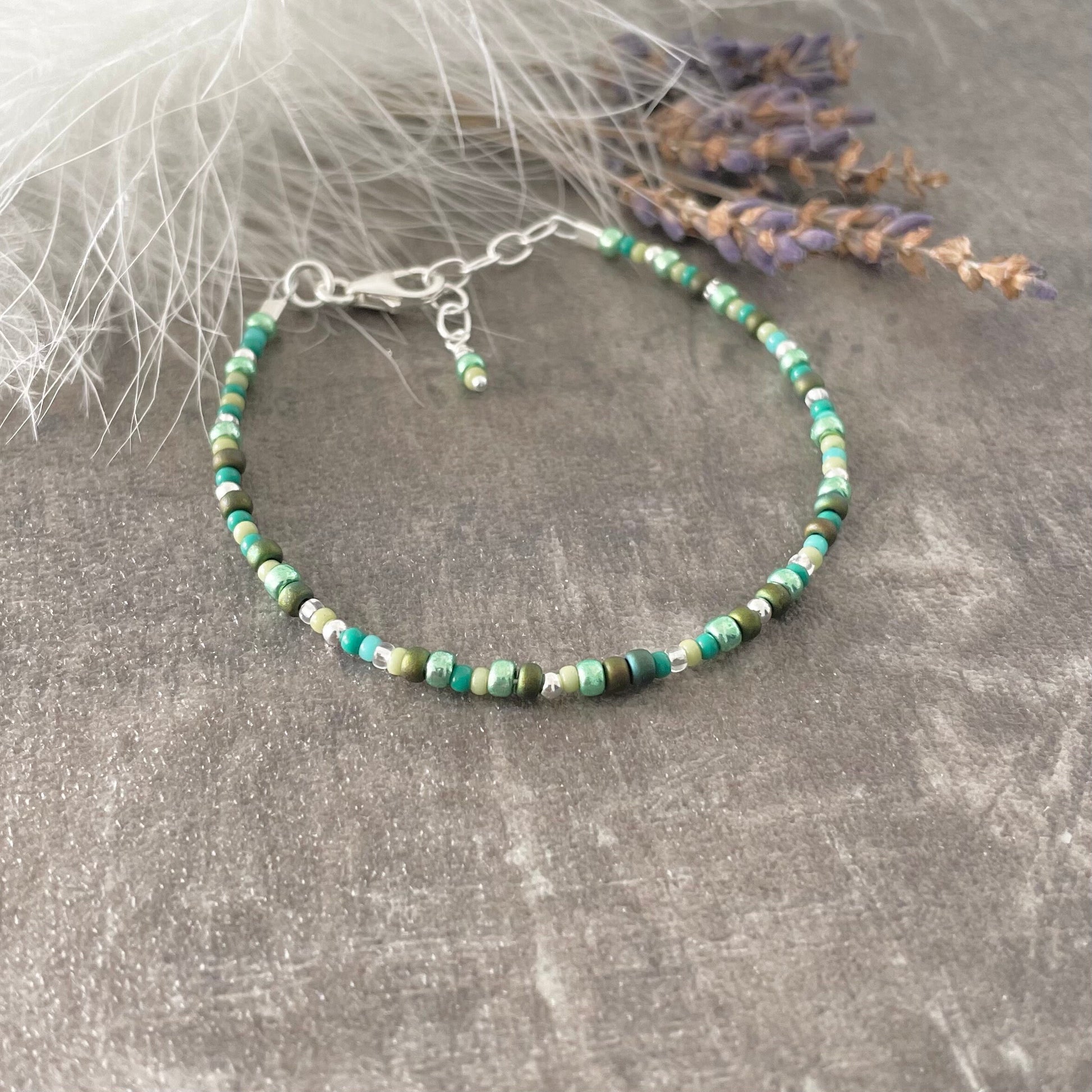 Lovely seed bead bracelet made with sterling silver, made in your size at a kind price.